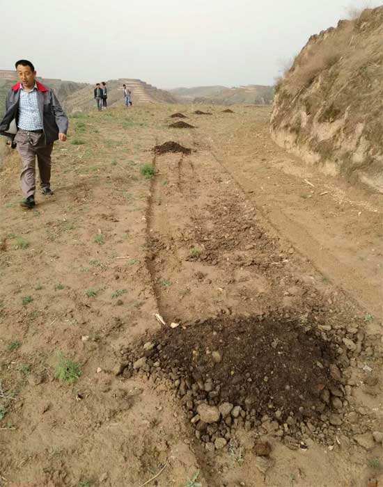 山花爛漫公司小雜糧種植基地負責人賀志平、賀利明在基地實地指導(dǎo)農(nóng)民施用農(nóng)家肥